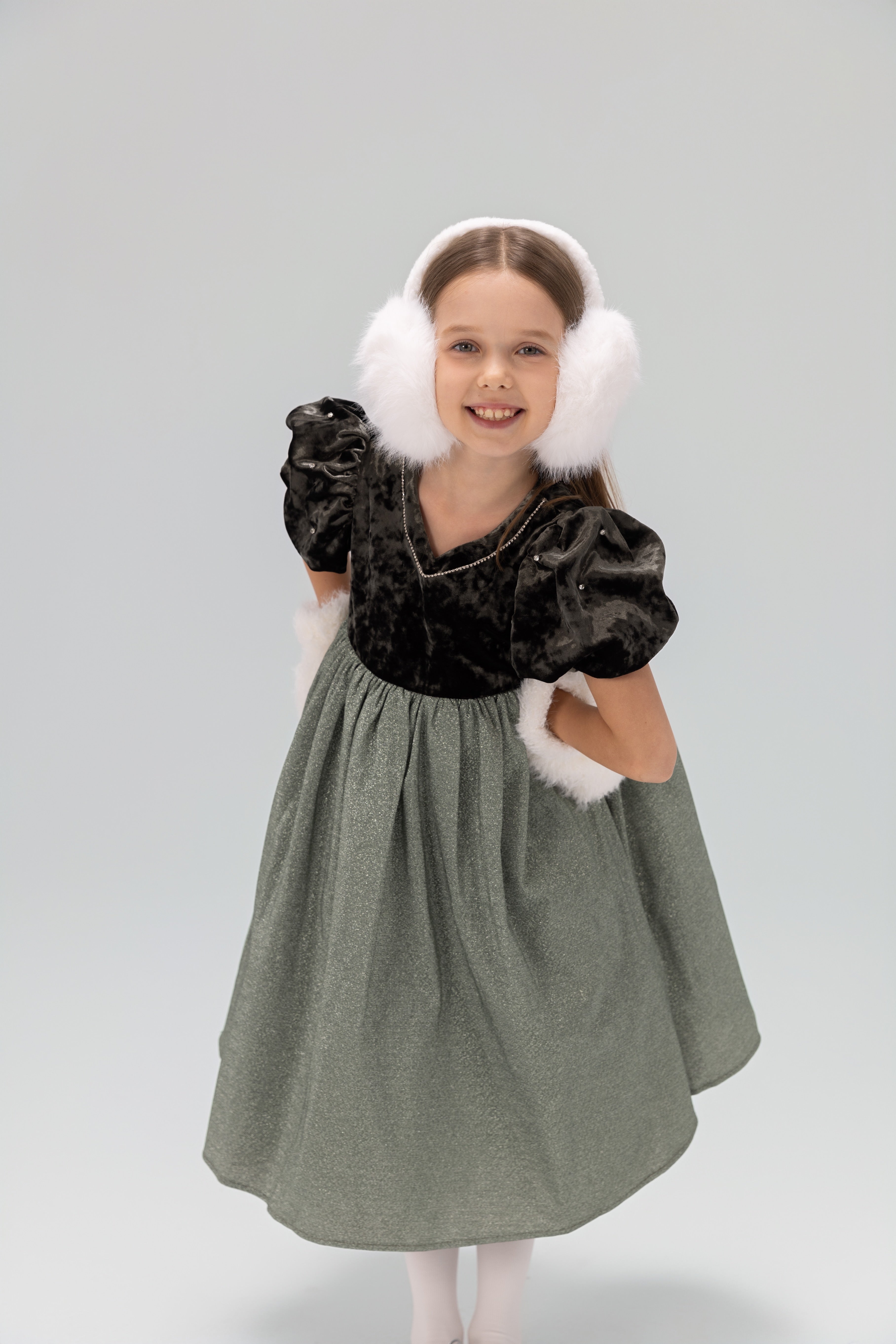 This exquisite velvet and tulle dress is the perfect blend of sophistication and charm. The bodice, crafted from luxurious black velvet, features a chic faux two-piece design with elegant puffed sl...
