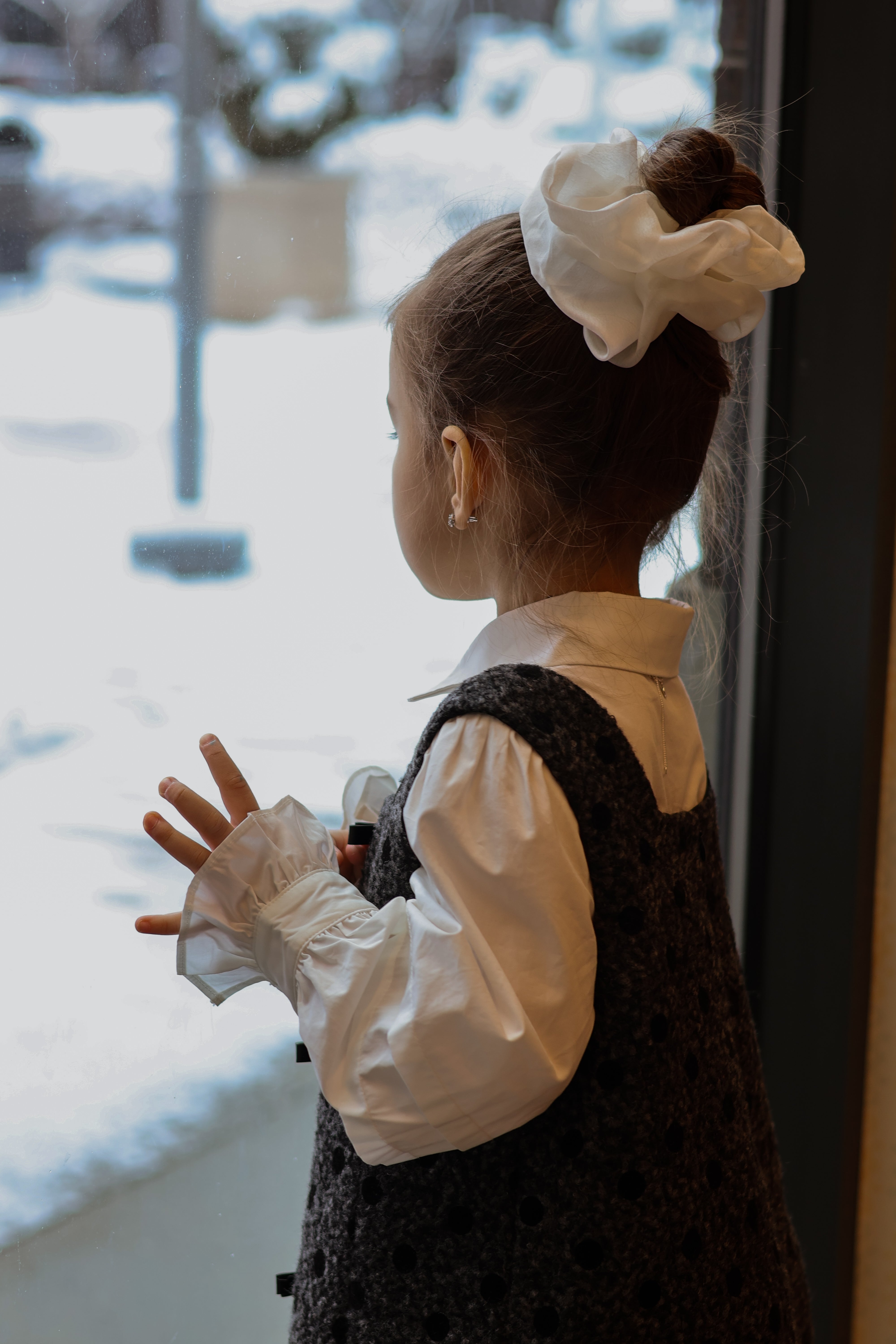A refined girls polka dot dress with playful charm. This premium boucle jumper blends couture polish with comfort for holidays, concerts, parties, and everyday style. Detail: Leather bow embellis...