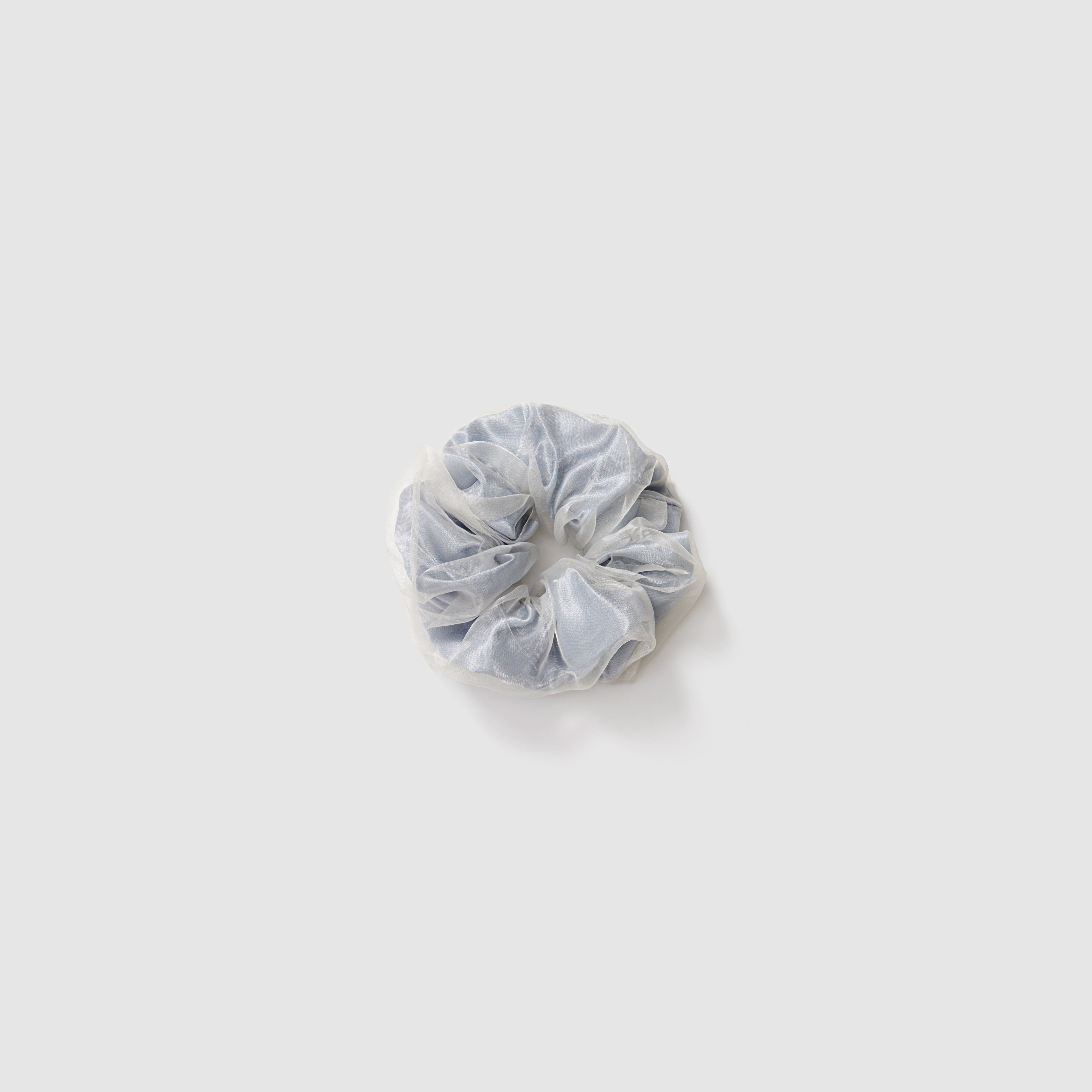 Soft shimmer, layered elegance. This twilight grey scrunchie features double layers of pearlescent mesh, creating a light, airy volume with a luminous sheen. Perfect for dreamy updos or a polished everyday ponytail.