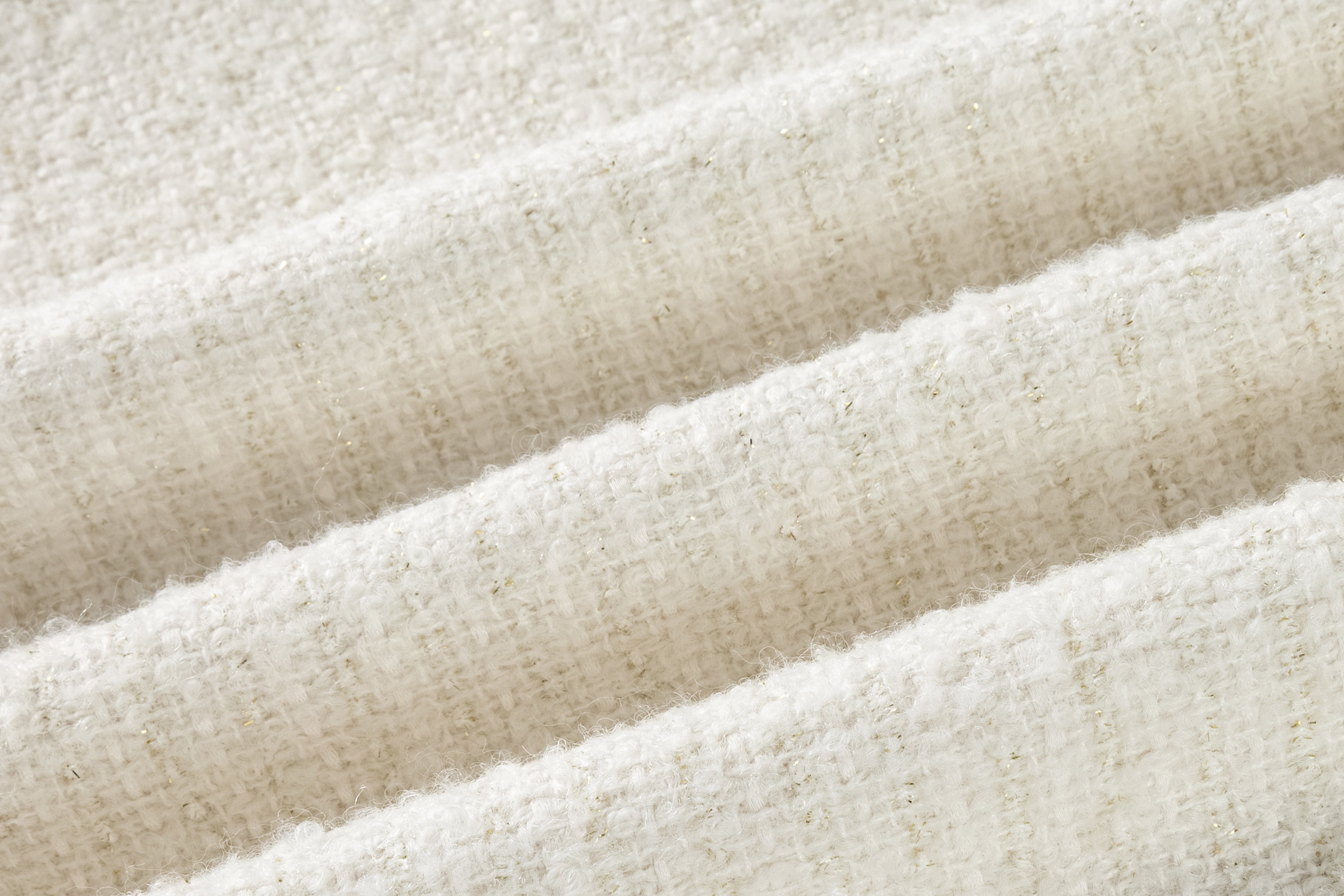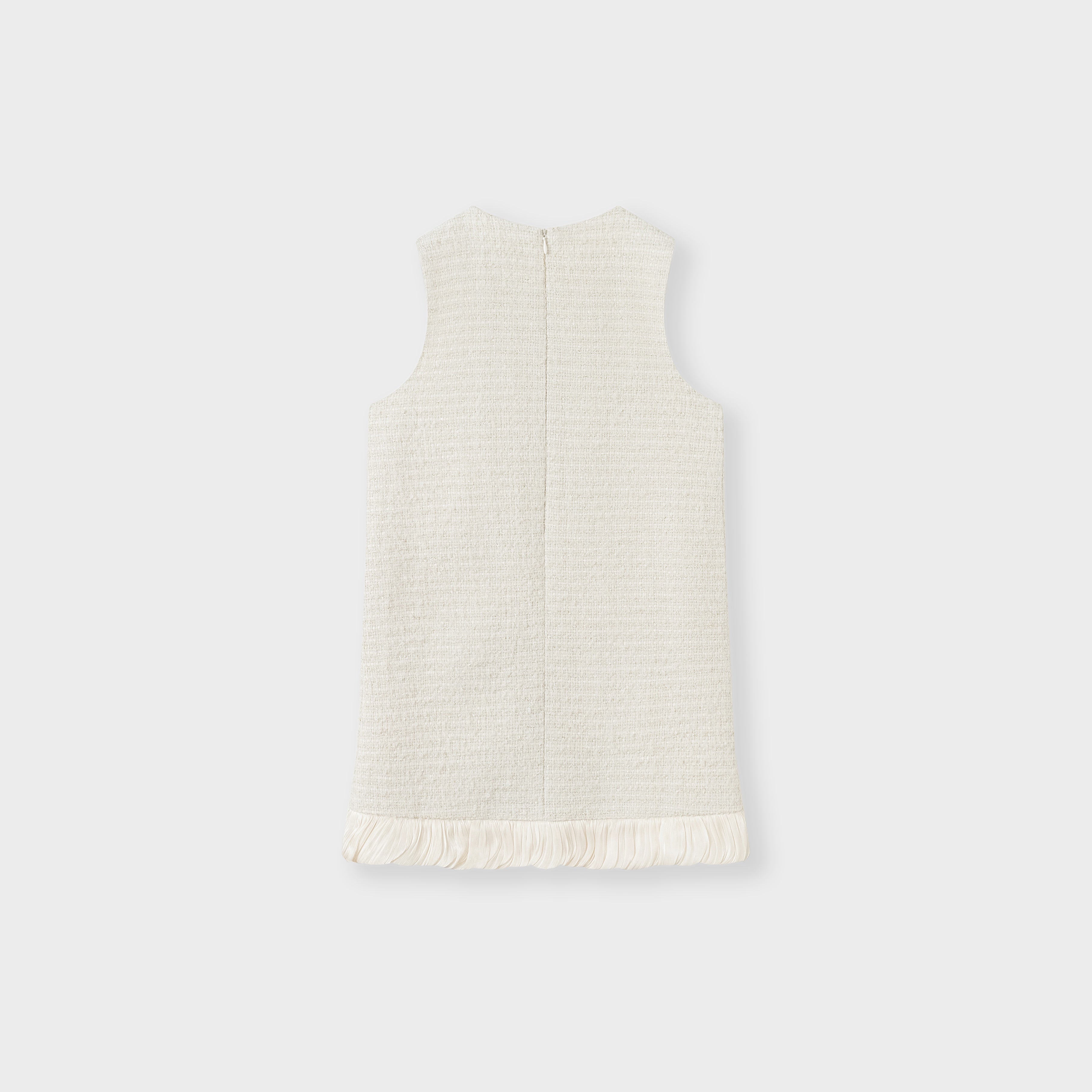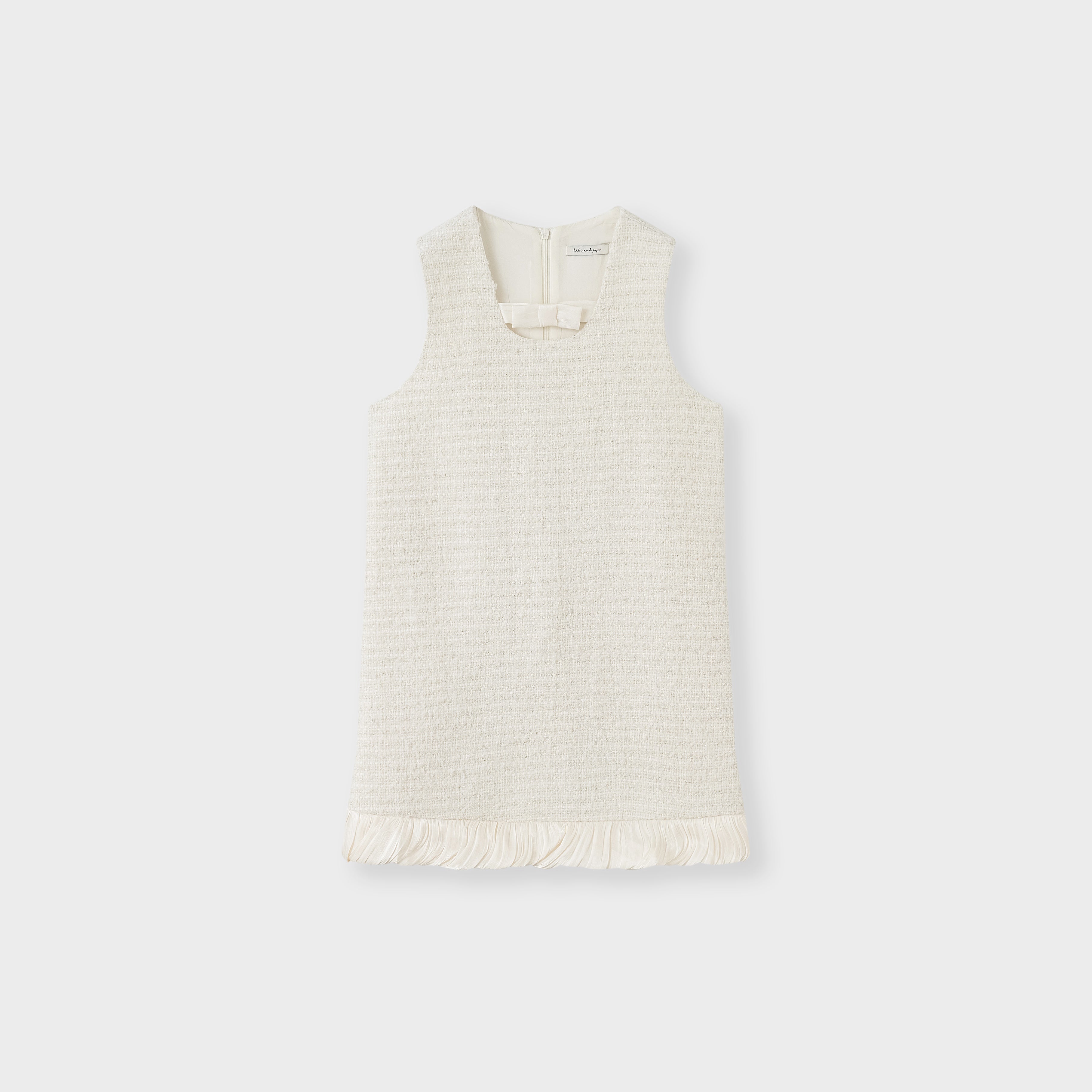 Glow-worthy and picture ready. This girls tweed shift in refined ivory is woven with gilded threads for a soft sparkle that shines at holiday galas, New Year moments, portraits, and elegant birthdays. A petite front keyhole framed by a tailored satin bow adds a sweet, polished finish.