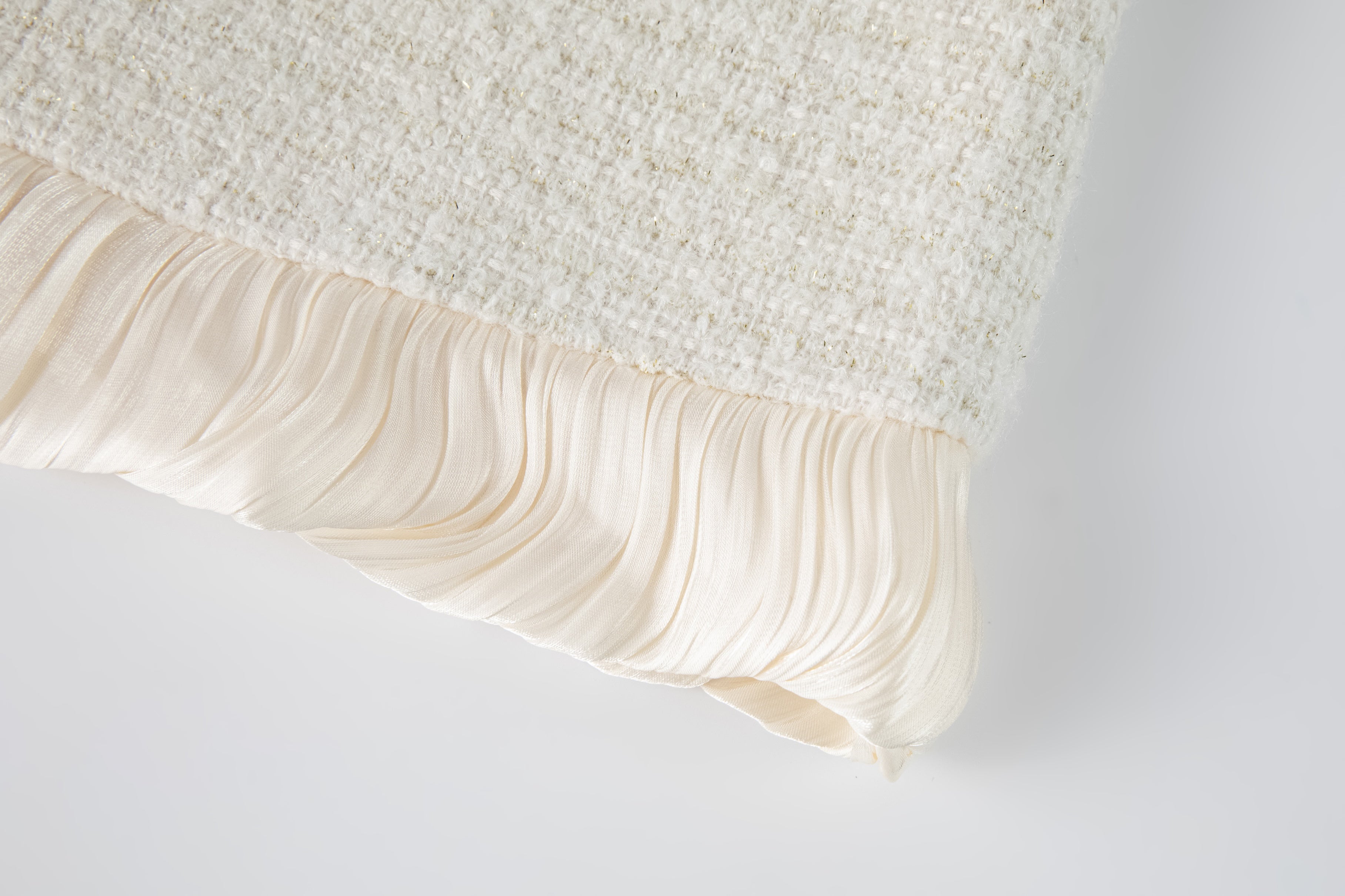 • Hemline: Sleek shift with finely pleated satin ruffle