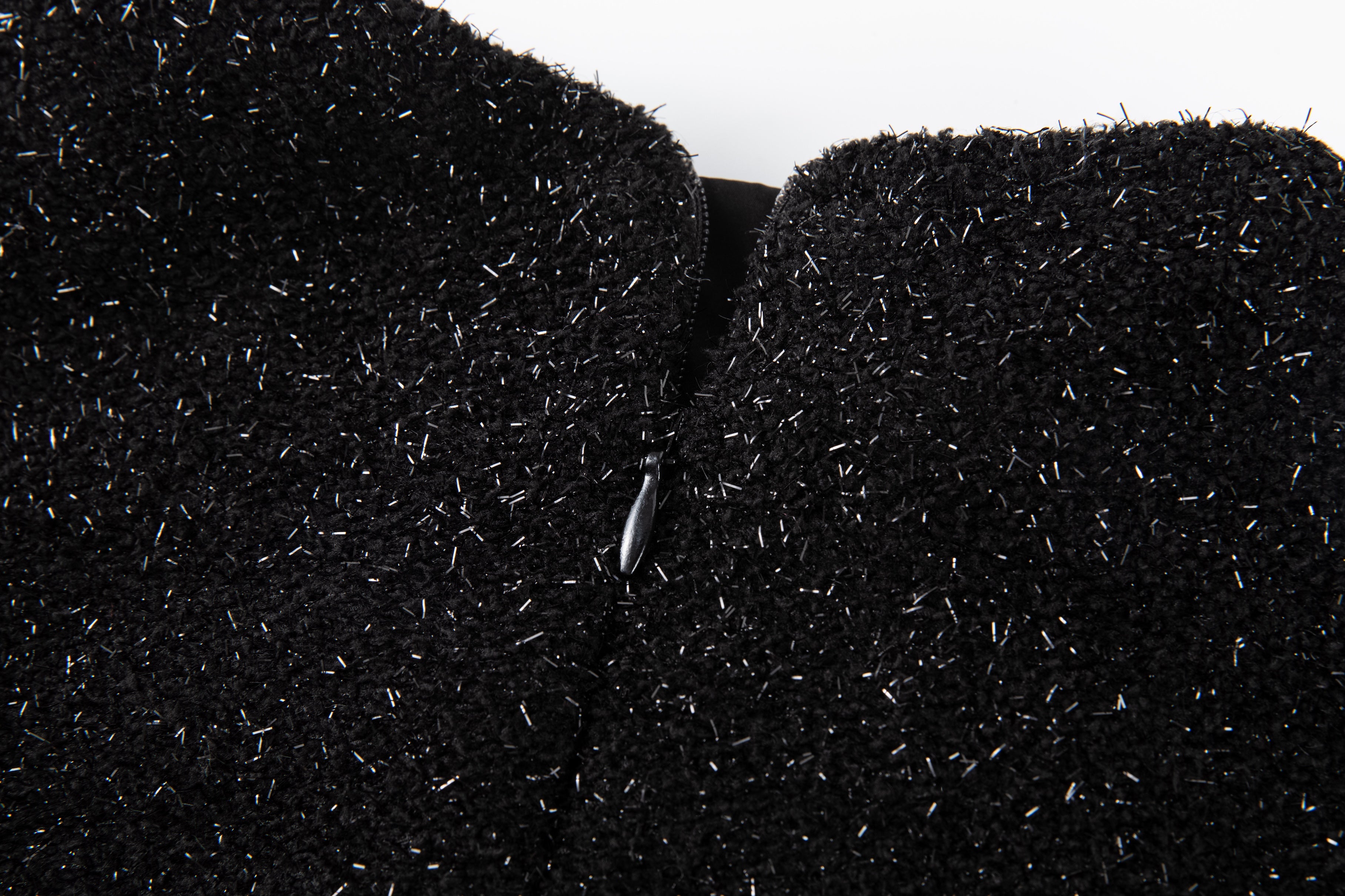 Show-stealing and photo ready. This girls black party dress shimmers with allover silver sparkle and a hand-beaded pearl and rhinestone collar that looks like a built-in necklace. Perfect for New Year moments, holiday parties, winter recitals, formal birthdays, and family portraits.