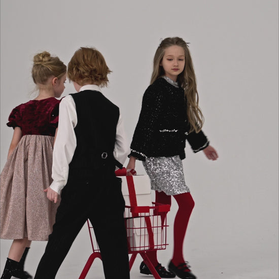 Crafted with timeless elegance in mind, this boys tailored black vest is a refined essential for any formal wardrobe.