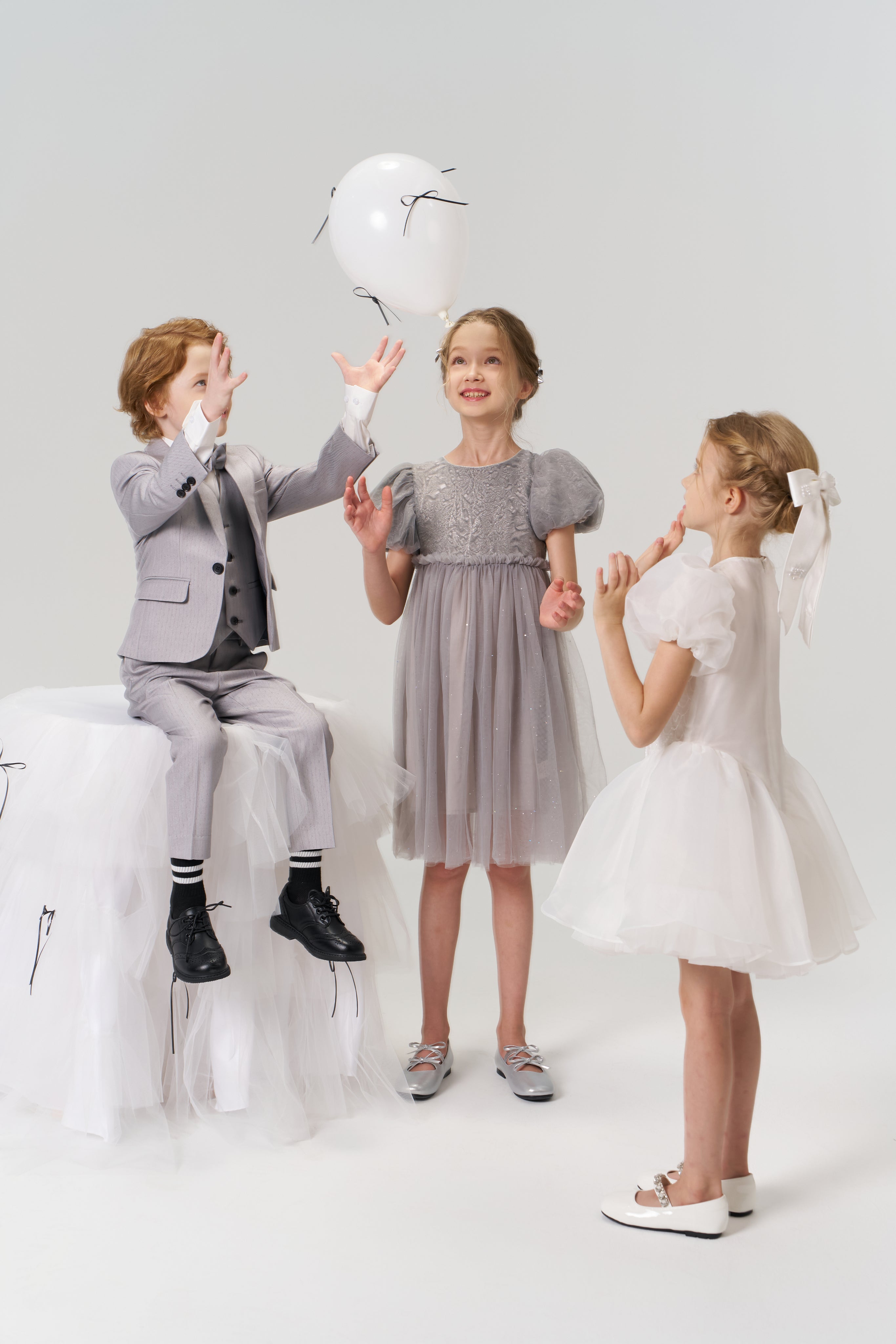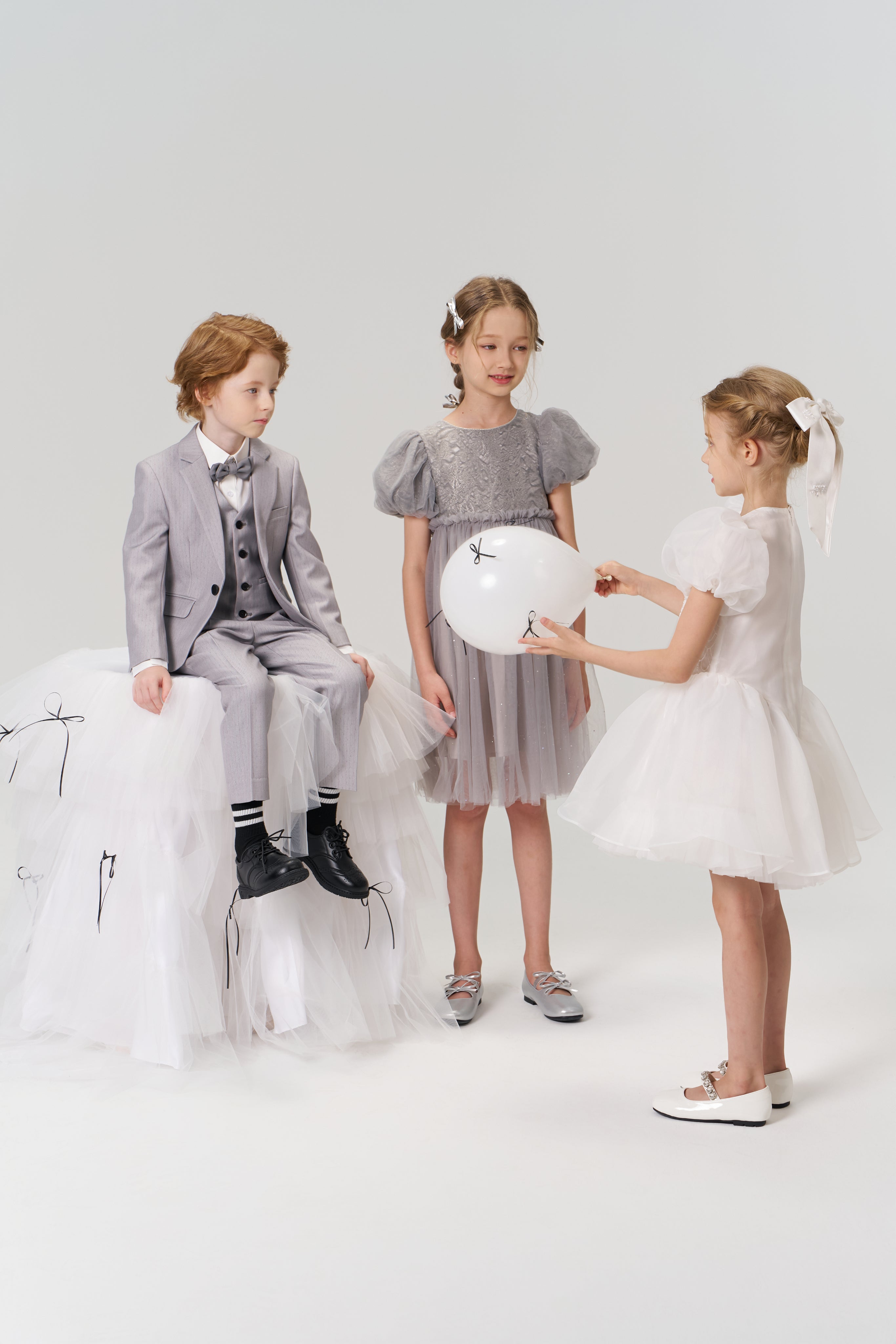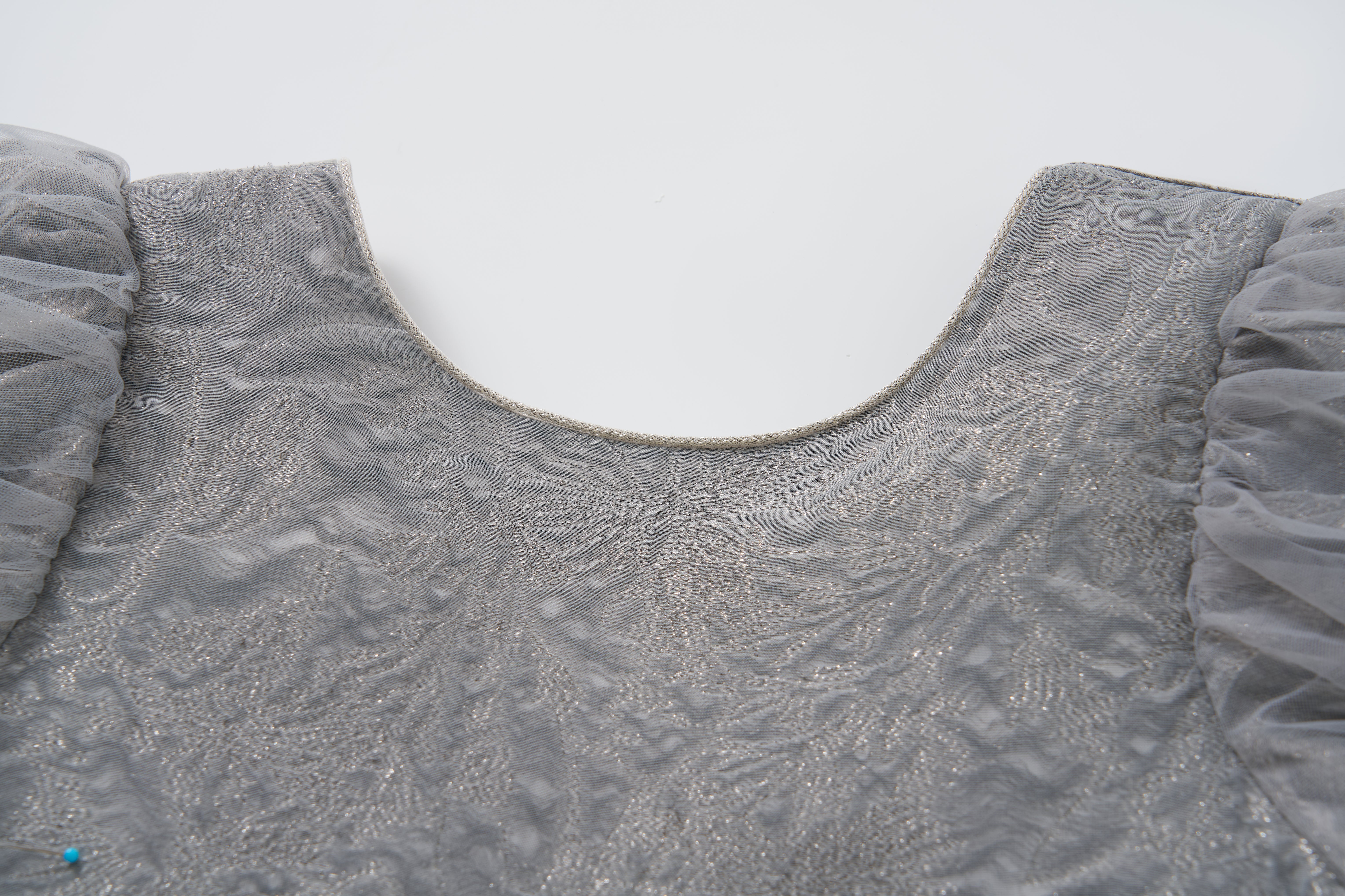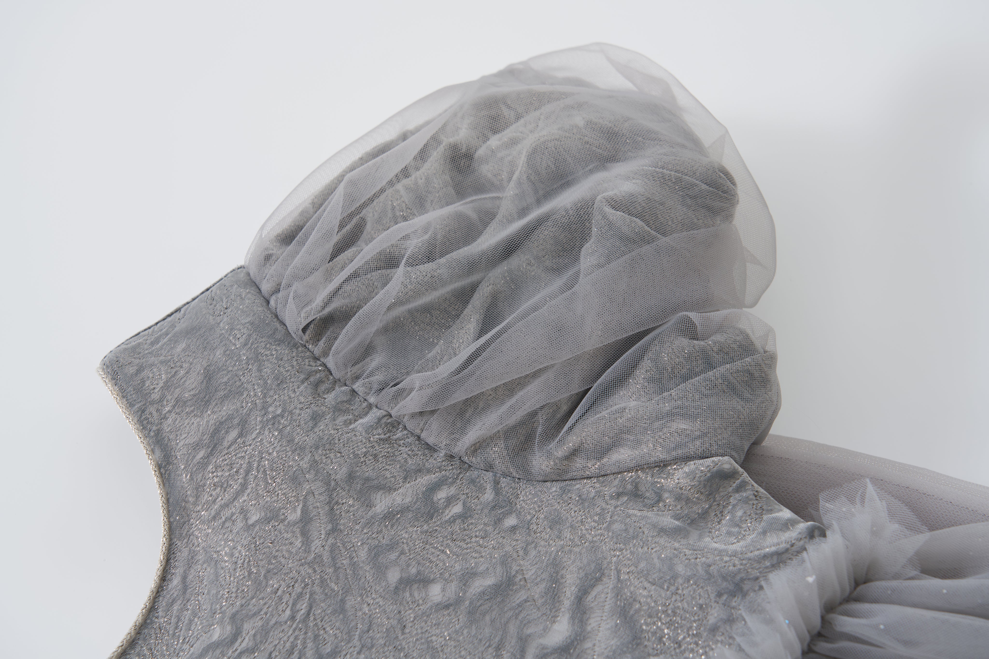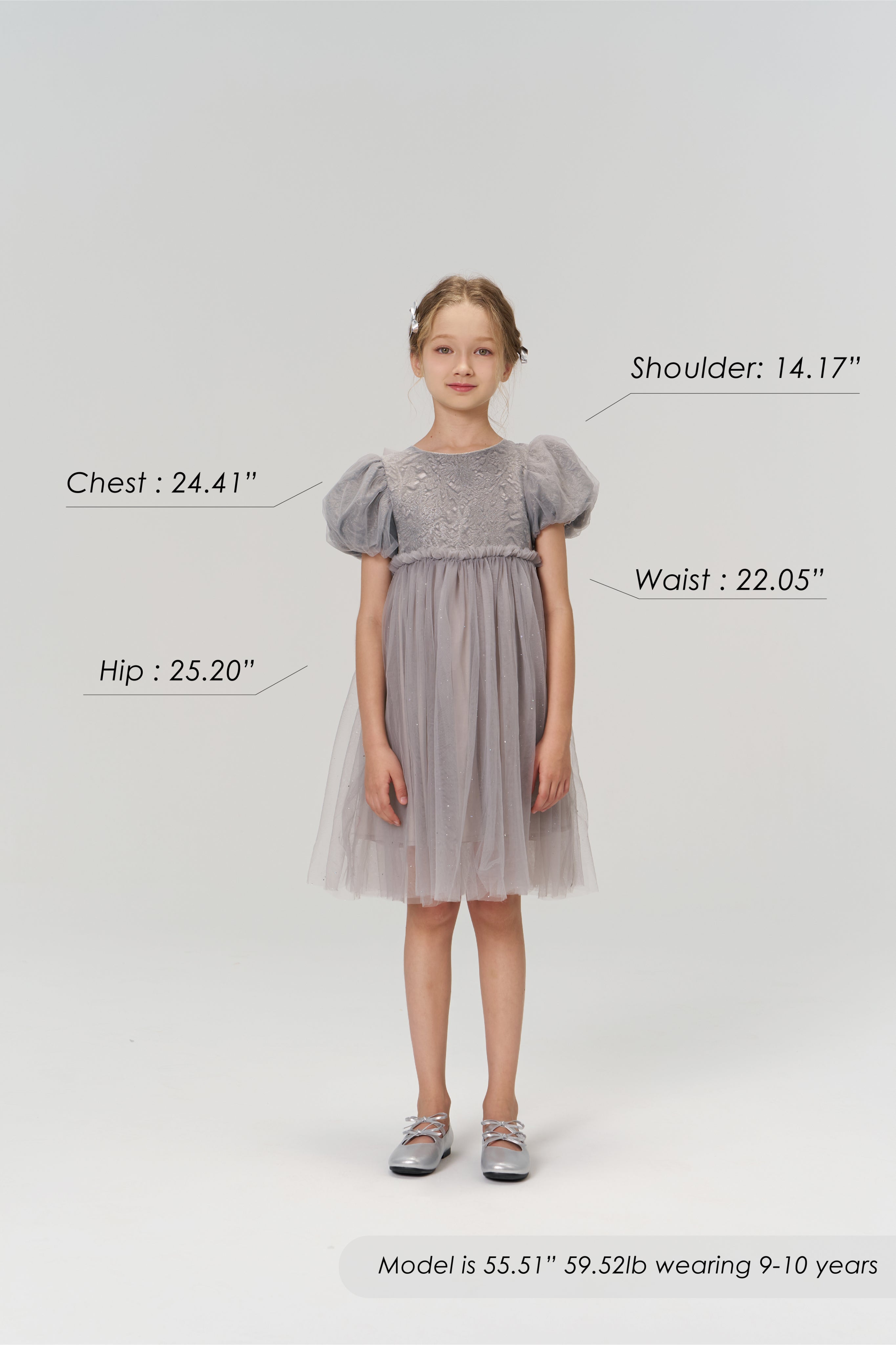 Soft, sophisticated, and quietly dazzling — this delicate grey puff-sleeve dress exudes understated luxury.