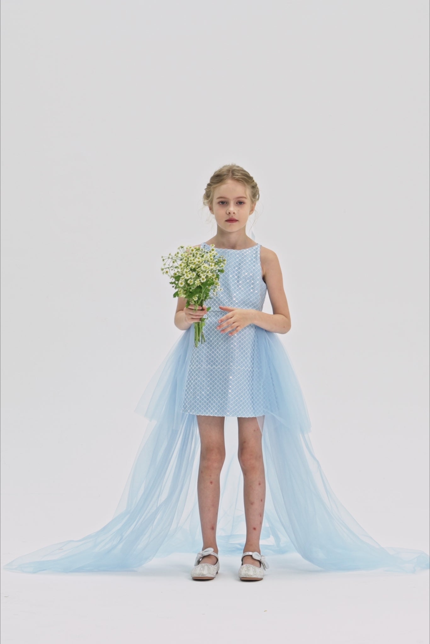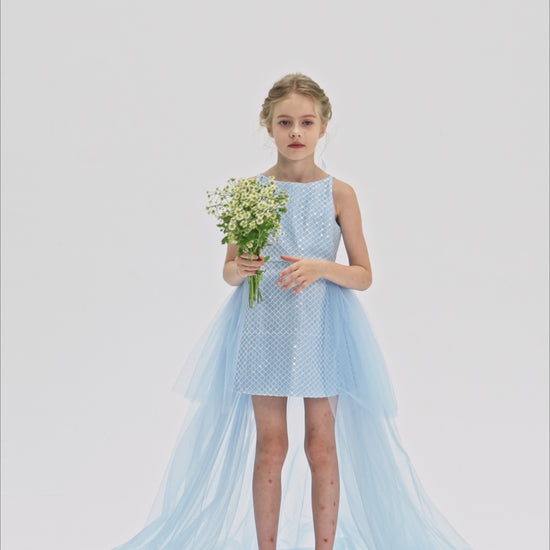From KIKI AND JOJO's Exclusive Atelier series, this convertible dress pairs lattice sequin tulle with a smooth satin lining. Wear the mini A-line base alone for daytime, or add the detachable tiered tulle overskirt for a formal moment.