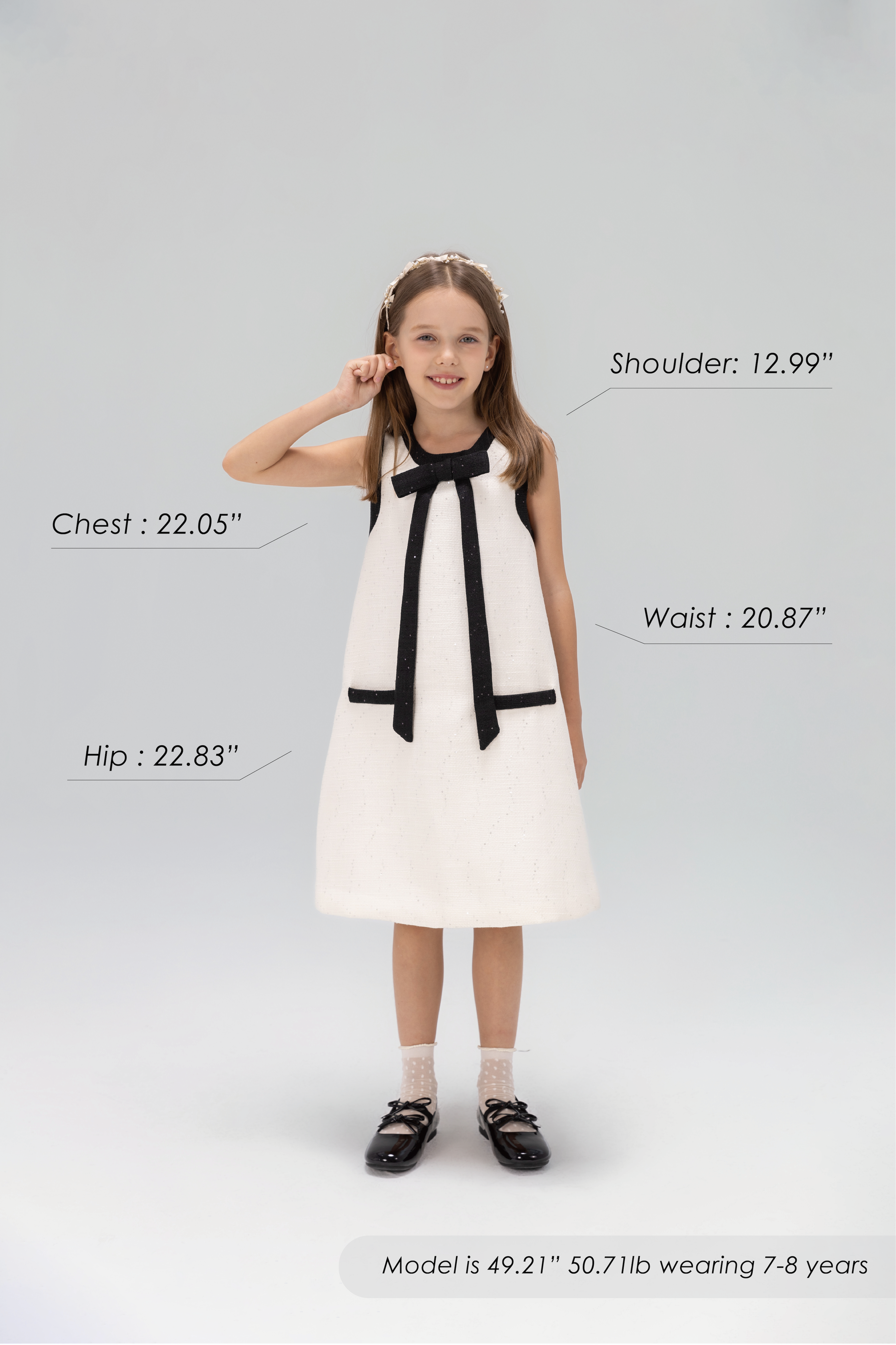 Elegant, timeless, picture ready. This girls tweed A-line dress pairs refined ivory tweed with classic black accents and a touch of sparkle for a chic French-inspired look.
