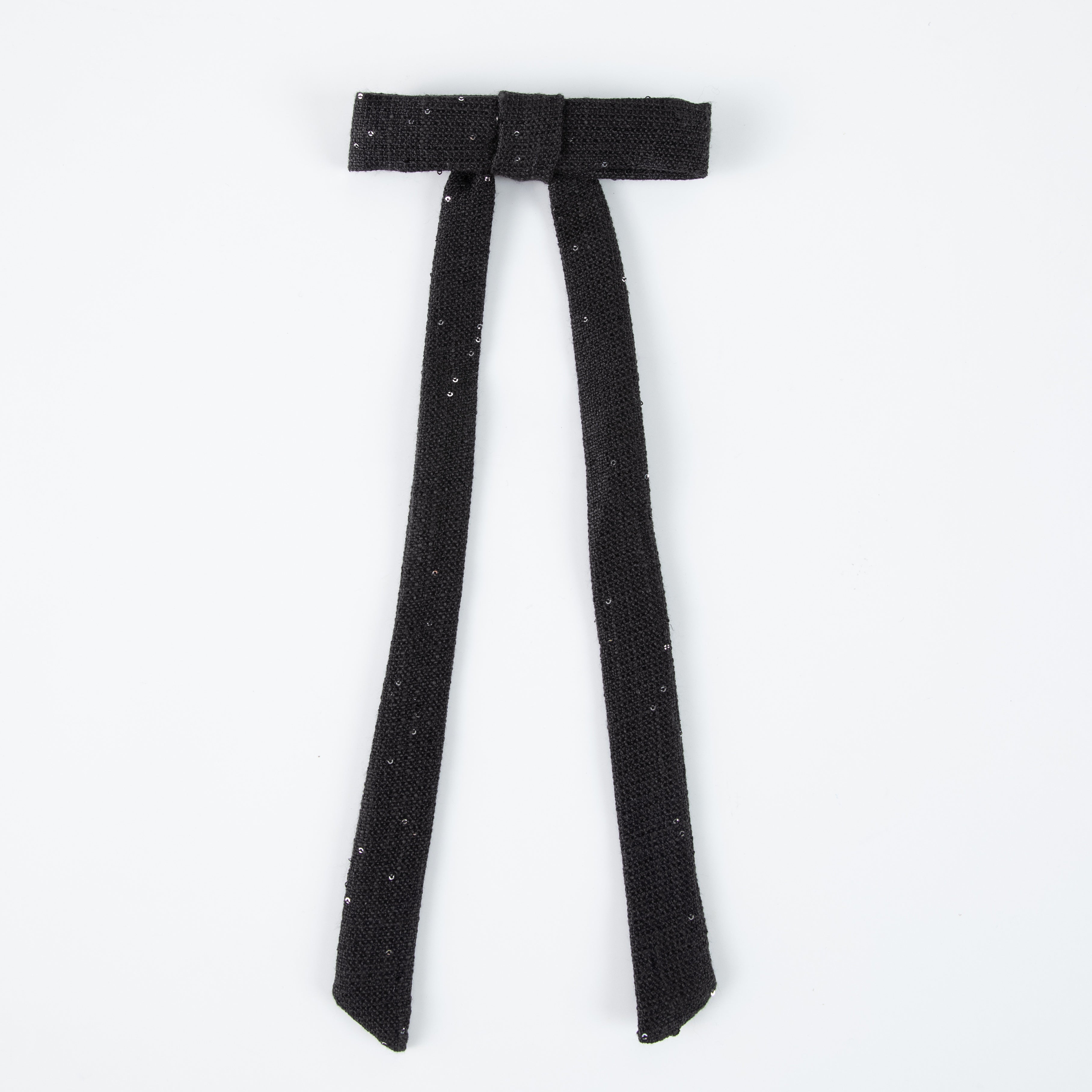 • Signature bow: Detachable black sequin bow at the neckline for versatile styling
